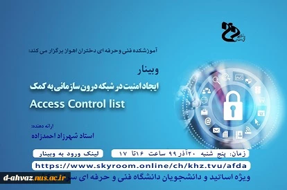 امتیاز دهید : برگزاری وبینار با عنوان ایجاد امنیت در شبکه های درون سازمانی / استاد شهرزاد احمد زاده 2 یکشنبه 16 آذر 1399 ساعت 13:16